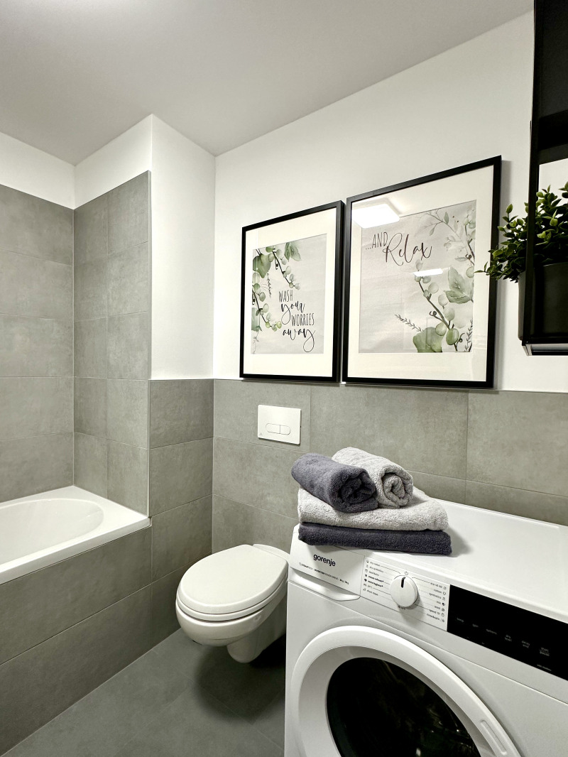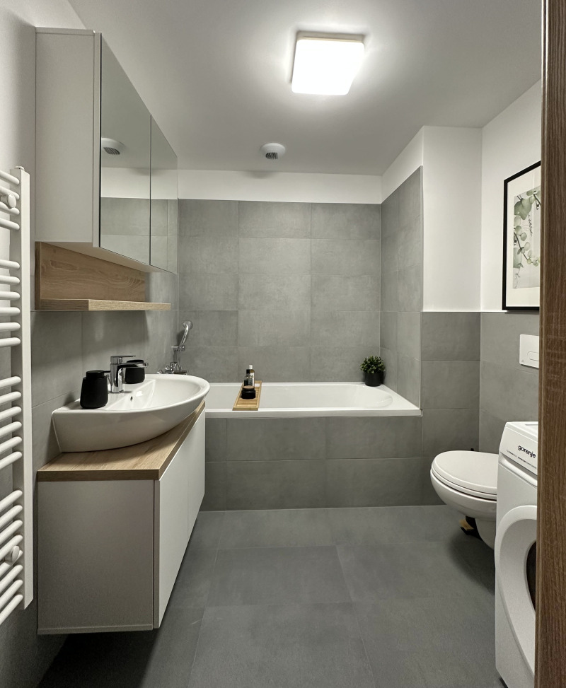 - kúpeľňa s vaňou, toaletou, ummývadlom a práčkou so sušičkou