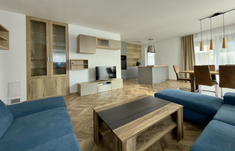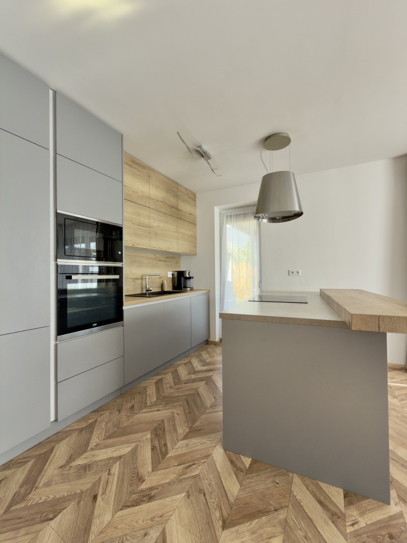 Nehnuteľnosť sa prenajíma kompletne zariadená. Kuchyňa je vybavená vstavanými spotrebičmi: indukčná varná doska, elektrická rúra, mikrovlnná rúra, umývačka riadu, digestor.