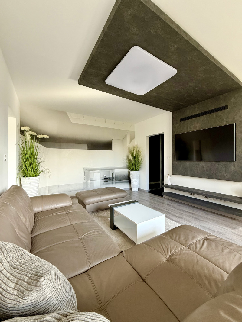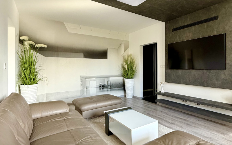 - obývacia izba s rozkladacou rohovou sedačkou, konferenčným stolíkom, TV