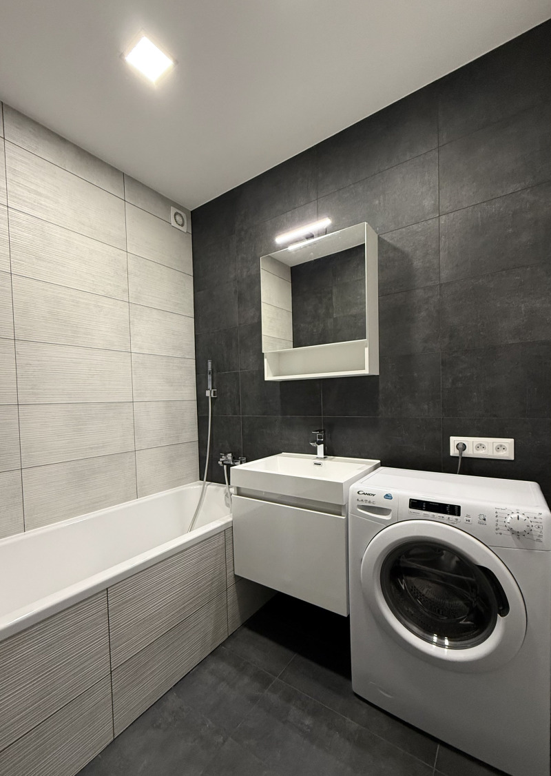 - kúpeľňa s vaňou, umývadlom a práčkou
