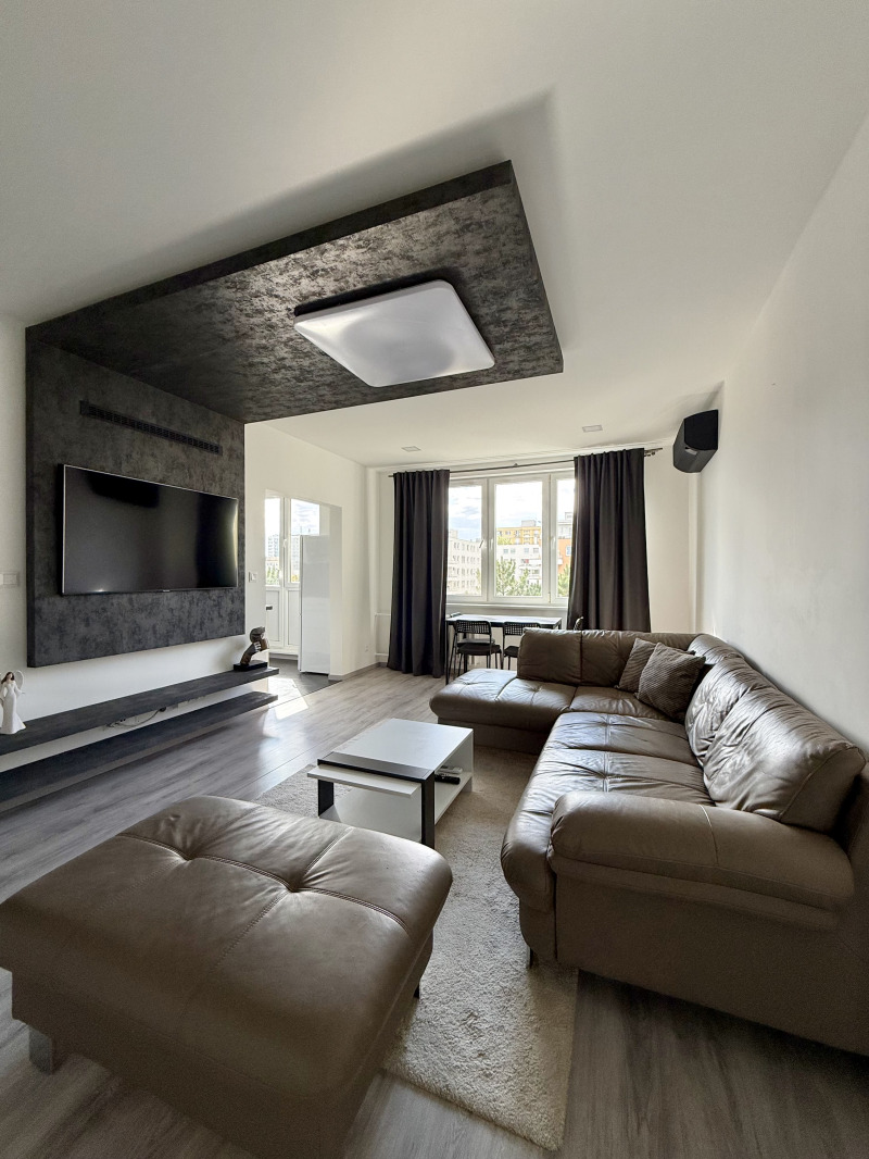 Ponúkame na prenájom príjemný, moderne zariadený 2,5-izbový byt s dvoma balkónmi vo vyhľadávanej lokalite Ružinova – na Herlianskej ulici, len pár krokov od nemocnice a polikliniky Ružinov.